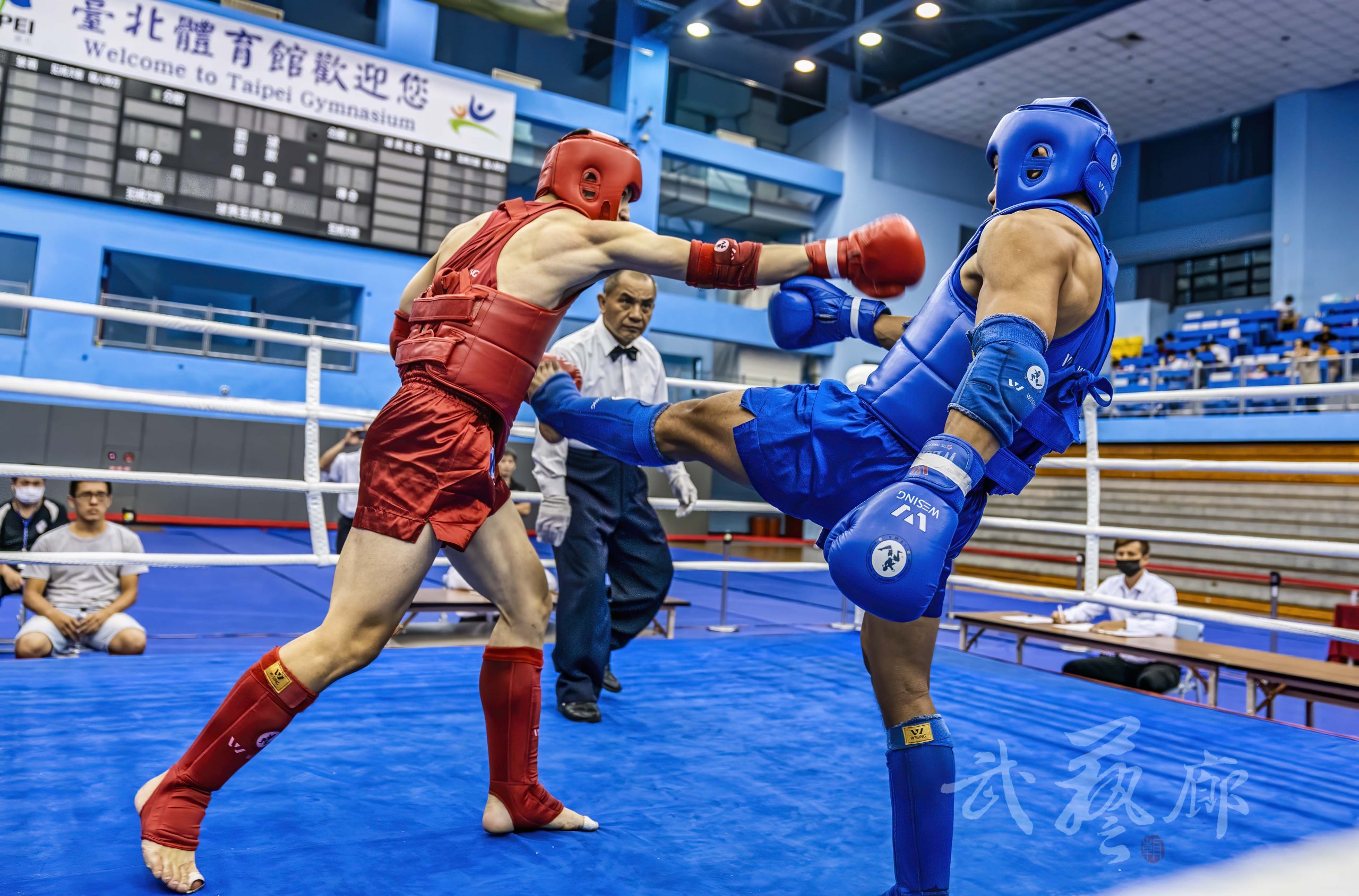 紅方來自台體技擊的立技好手 穆韋文, 同樣也是全國運動會武術散打的縣市代表, 穆韋文在台灣也有不少技擊賽事成績, 擅長與對手維持距離的拳腿打擊, 散打形式的側踹、前踹皆是穆韋文的距離戰武器